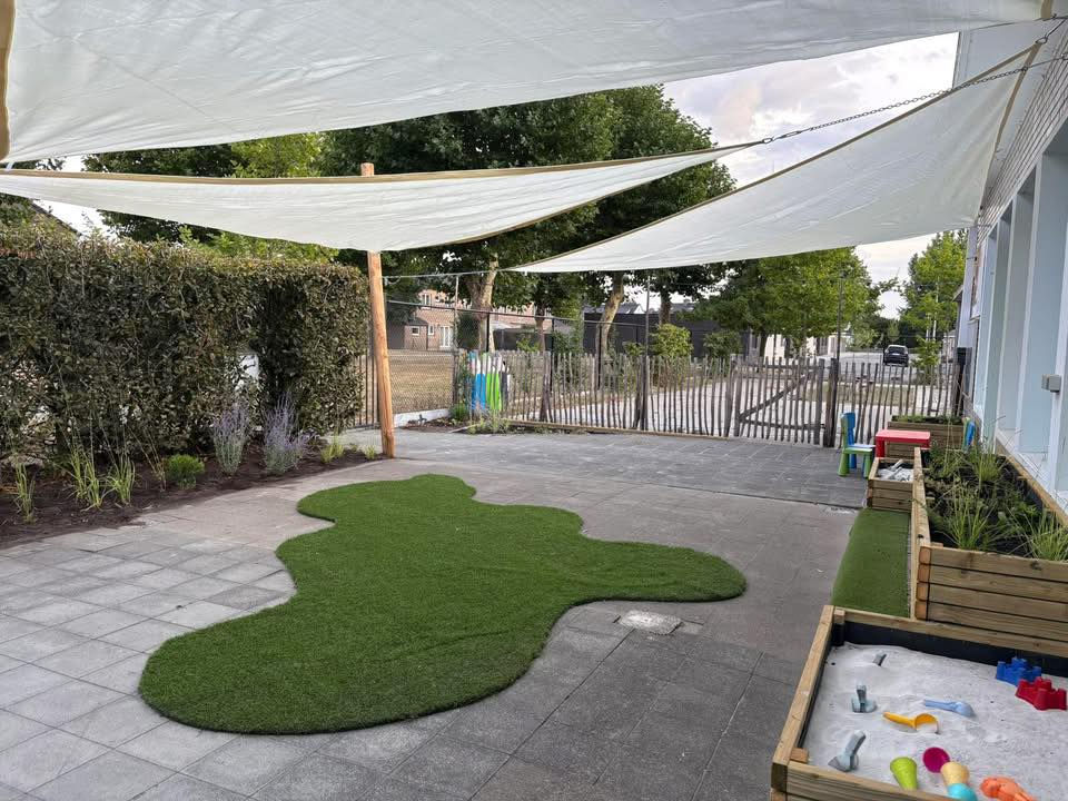 Buiten zijn we volop bezig met nieuwe speel- en leerzones, natuurlijke speelelementen en zelfs buitenklassen waar leren, ontdekken en bewegen hand in hand gaan.