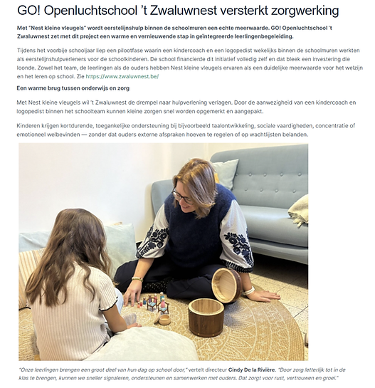 Beluister het nieuwsfragment op Radio 2 over het innovatieve project "Nest kleine vleugels", vanaf minuut 2:45.